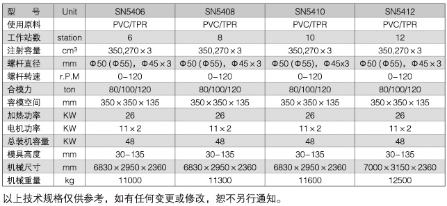 8.主副機均采用改良型四柱結構,變形小,使用壽命長。制品穩定性高。